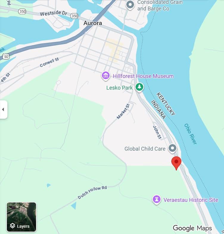 Easy to find! Located directly on the Ohio River Scenic Byway (IN-56/Decatur St) in Aurora, IN with amazing views of the Ohio River.  Walk or bike to town (less than 1 mile) on the Dearborn Trail across the street from our property. Close to great restaurants, wineries, casinos, shopping, Perfect North Slopes and only 35 min from Cincinnati and 60 min to the Ark Encounter.